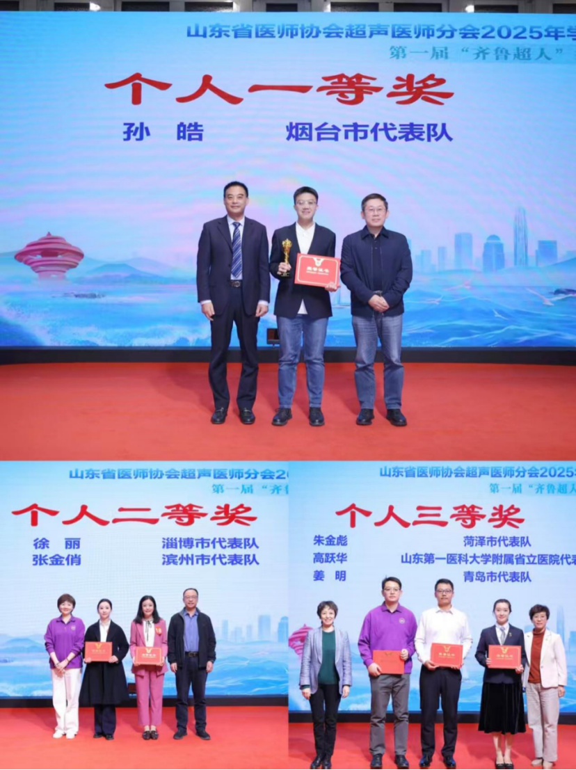 本次年会的一大亮点是成功举办了第一届“齐鲁超人”技能大赛,由16个地市的18支参赛队伍参加了本次比赛。经过激烈角逐,分别产生个人及团体一等奖一名,二等奖2名,三等奖3名,优秀奖12名,其中烟台代表队孙皓获得个人一等奖,潍坊代表队获得团体一等奖。这场别开生面的竞赛旨在“以赛促学”,全面考察和提升超声医师的临床实践能力,为全省中青年超声医师提供了切磋技艺、展示风采的舞台,促进了青年医生的成长,有效激发了广大医师的学习热情,为培养后备人才、推动学科可持续发展奠定了坚实基础。