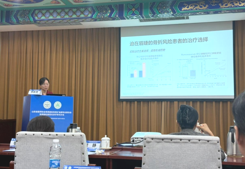 学术交流环节,北京积水潭医院李新萍教授以“新诊断骨质疏松患者治疗方案选择”为题,结合临床实践与最新研究成果,分享了个体化治疗的策略与思路;天津市天津医院程静教授作了《天津市抗骨质疏松治疗与药物相关颌骨坏死问题专家共识》解读,对临床应用中备受关注的风险管理问题进行深度剖析;山东大学齐鲁医院刘媛教授则围绕“双能X线吸收法骨密度测定(DXA)在临床中的应用”进行了系统讲解,强调骨密度检查在诊疗中的价值及、注意事项与结果解读;乐陵市人民医院封玲玲主任结合专科实践,分享了骨质疏松专科建设的经验与成果,为基层医院学科发展提供了有益借鉴。