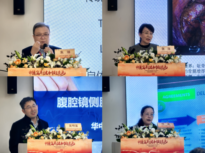 随后朱琳教授、张萍教授、符淳教授、吴明富教授分别围绕“腹腔镜下侧腹壁悬吊术联合术式的手术策略和技巧”“腹腔镜下盆底重建术”“国际侧腹壁悬吊术专家共识”“腹腔镜下侧腹壁悬吊术常见复发和并发症的预防及处理策略”进行专题讲座。