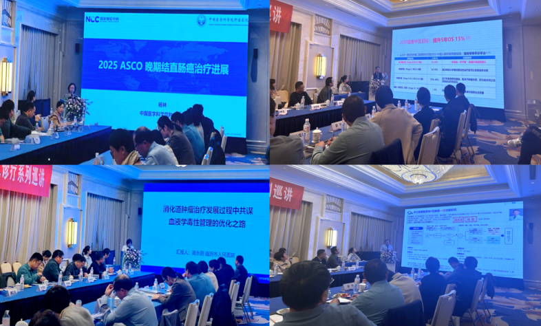 学术交流环节,中国医学科学院肿瘤医院的杨林教授、山东省立医院李成利教授、临沂市人民医院高永丽教授、潍坊市人民医院任海朋教授分别围绕“2025年ASCO肠癌最新研究进展”“肝癌早诊早治:磁共振特异性对比剂引导肝脏极早期肝癌的诊疗策略与管理”“消化道肿瘤治疗,共谋血液学毒性管理的优化之路”“伊立替康脂质体(Ⅱ)在各癌种中循证医学证据”进行专题报告。随后,刘淑真教授、杨淑萍教授、孙衍伟教授、尹岩伟教授等主持人对各环节进行了精彩点评,并与现场专家展开深入讨论。