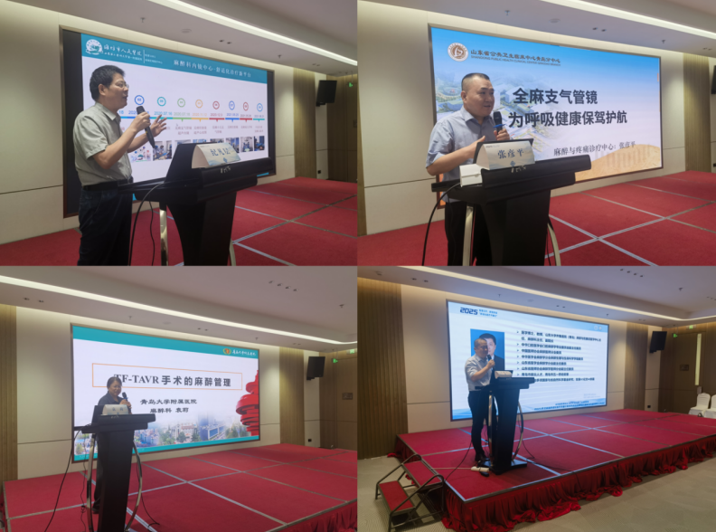 潍坊市人民医院纪凡层教授、青岛市公共卫生临床中心张彦平教授围绕“十年磨一剑—麻醉学科建设”“TAVR手术的麻醉管理”“新形势下舒适化医疗的安全问题与应对策略---以宫腔镜水中毒为例”“气管镜麻醉培训专题”“全麻支气管镜一为呼吸健康保驾护航”进行专题讲座和病例分享。