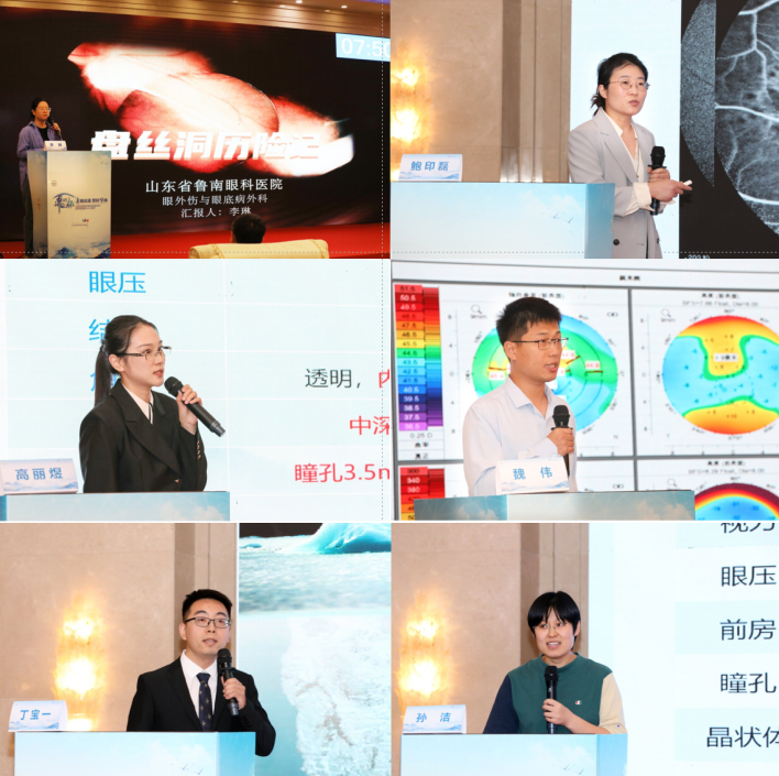 来自山东中医药大学附属眼科医院、青岛市胶州中心医院、淄博市中心医院、枣庄市立医院、龙口市人民医院、临沂市人民医院、沂南县人民医院、山东省鲁南眼科医院、日照正大光明眼科医院、聊城市人民医院10家医疗机构的10名青年眼科才俊同台竞技,通过一场场“病例硬仗”,奉献了兼具规范、创新与人文温度的学术盛宴。