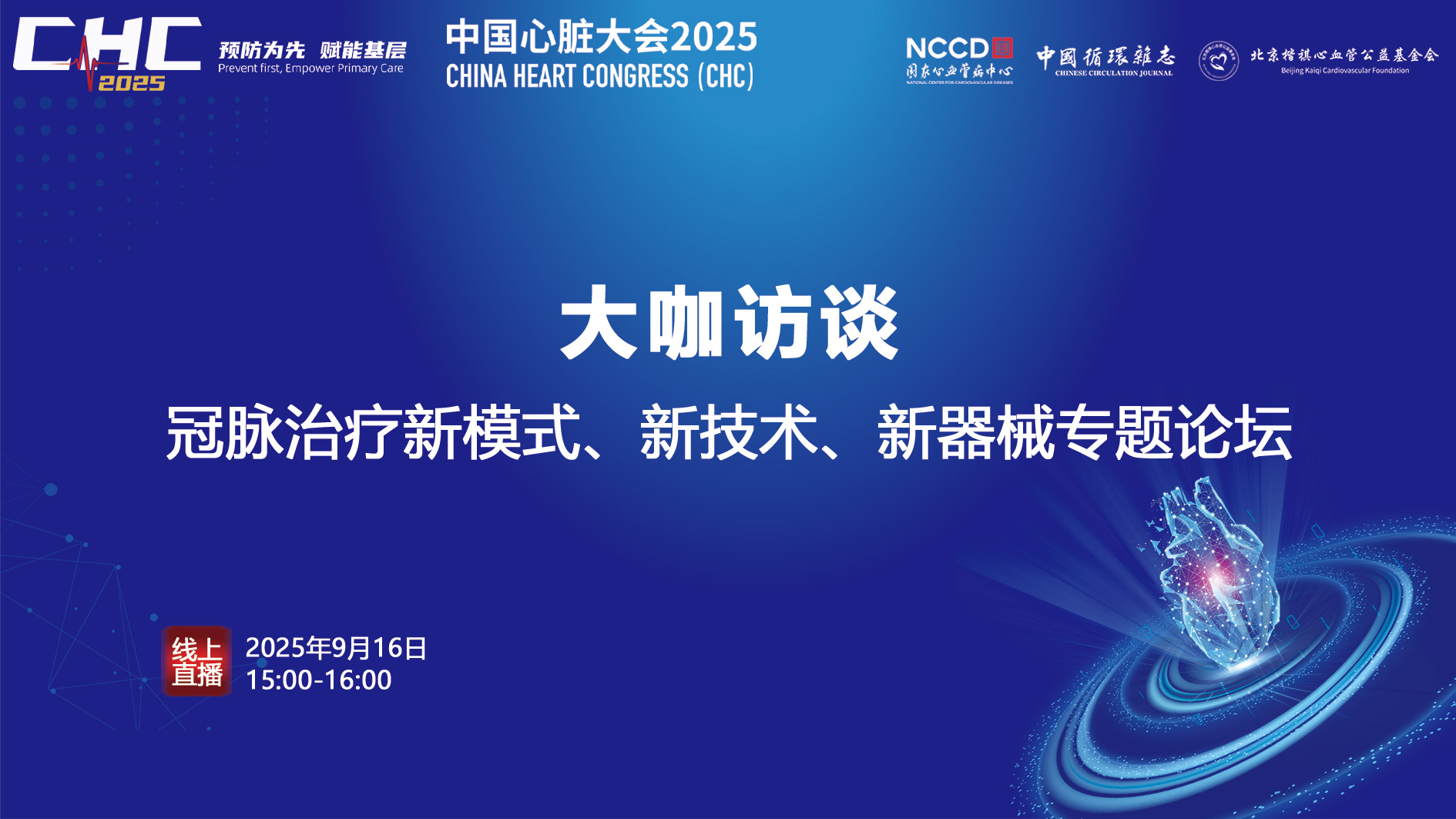 直播已结束观看回放中国心脏大会2025:大咖访谈——冠脉治疗新模式、新技术、新器械专题论坛
