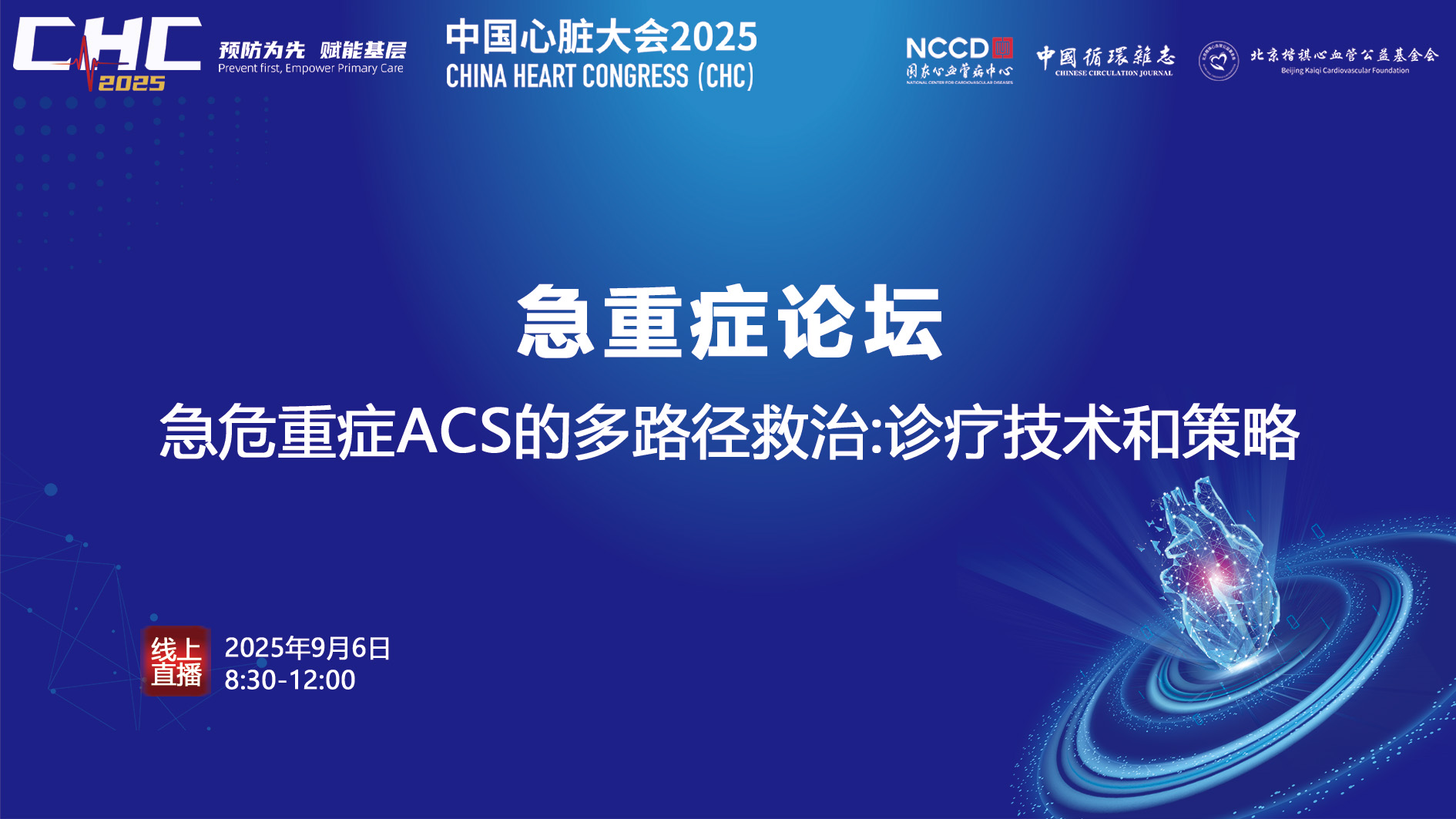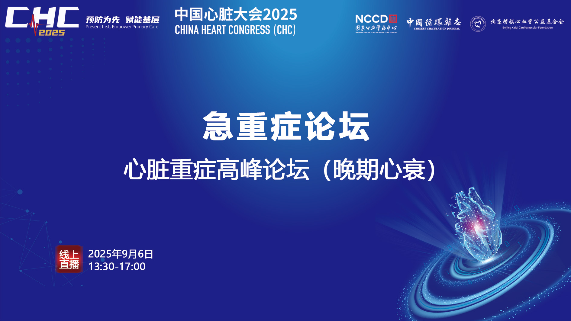 直播已结束观看回放中国心脏大会2025:急重症论坛——心脏重症高峰论坛(晚期心衰)