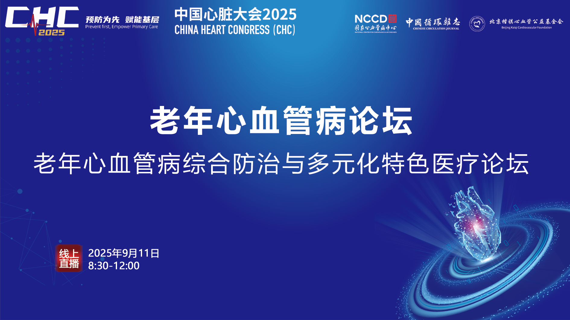 直播已结束观看回放中国心脏大会2025:老年心血管病论坛——老年心血管病综合防治与多元化特色医疗论坛