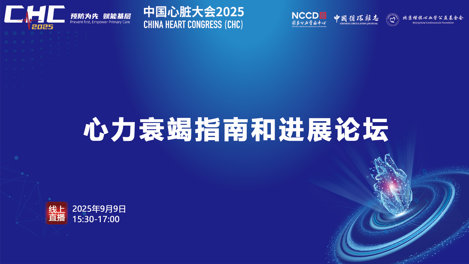 直播已结束观看回放中国心脏大会2025:心力衰竭指南和进展论坛
